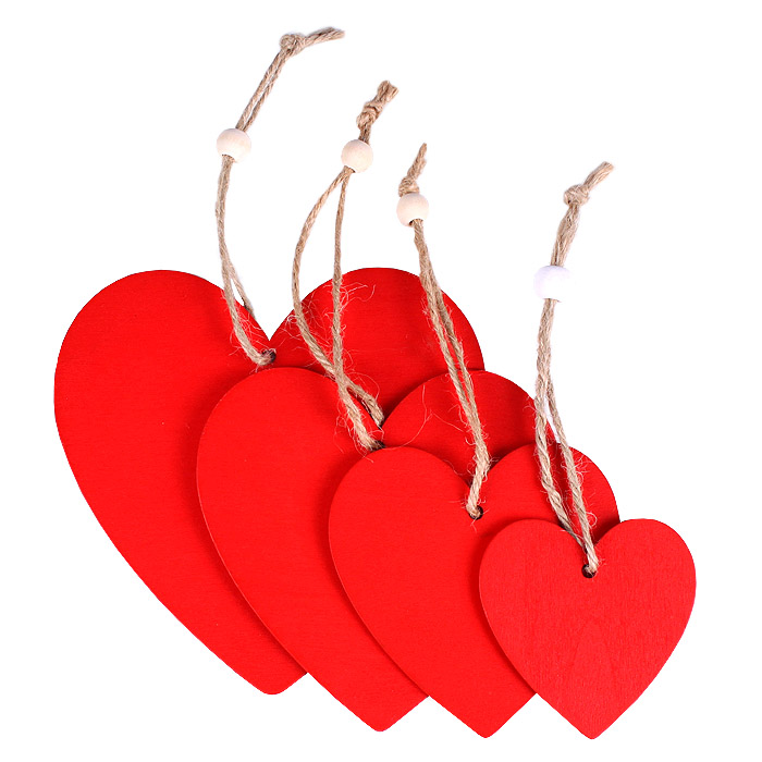 Подвеска деревянная "Сердце" 4шт/уп (набор). Цвет: красный и белый.Размер Сердец 12*12см,10*10см,8*8см,6*6см. Упаковка - п/э европодвес15*15см