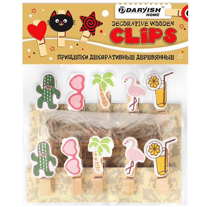 Прищепки декоративные деревянные "Майами" 10шт/уп + шпагат 1,40 см (набор). Прищепка h3.5 см.Размер упаковки 12*13,5см. Европодвес.Предназначены для рукоделия, украшения и отделки, как самостоятельный элемент или для крепления различных деталей в скрапбукинге, кардмейкинге, флористике и других техниках.