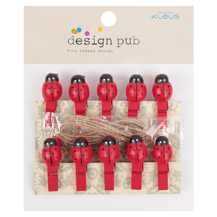 Прищепки "Божья коровка" декоративные деревянные в наборе. Комплектность : 10 прищепок , верёвка 2 м. Размер прищепки :3,5см. В упаковке один цвет прищепок с божьей коровкой. Цвет:красный, Предназначены для декорирования. Упаковка: пакет с европодвесом.12,5*13*2см