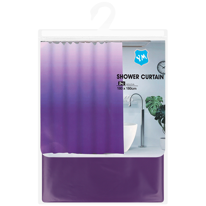 Шторка для ванной с кольцами 180*180см ассорти. Комплектность: шторка, кольца (12шт). Цвет: зеленый, розовый, серый, синий, фиолетовый. Упаковка: пакет 20,5*29,5*1,5см.