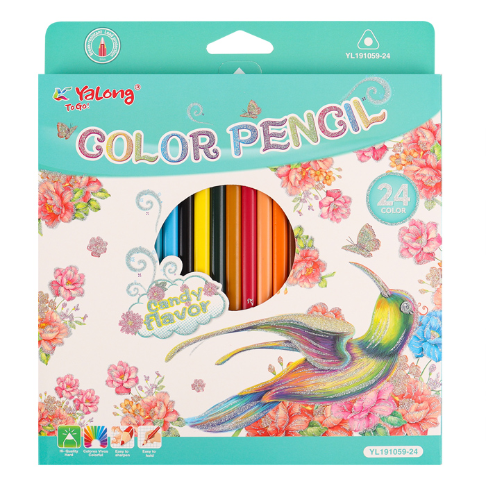 Предназначены для рисования на бумаге и картоне. Количество цветов : 24. Трёхгранный корпус из пластика. Упаковка 4шт: плёнка.19,5*38*2,5см