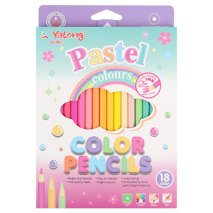 Предназначены для рисования на бумаге и картоне. Количество цветов : 18. Шестигранный корпус из древесины.