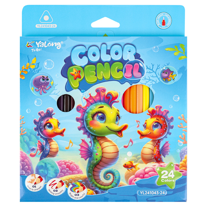 Предназначены для рисования на бумаге и картоне. Количество цветов : 24. Трёхгранный корпус из древесины.