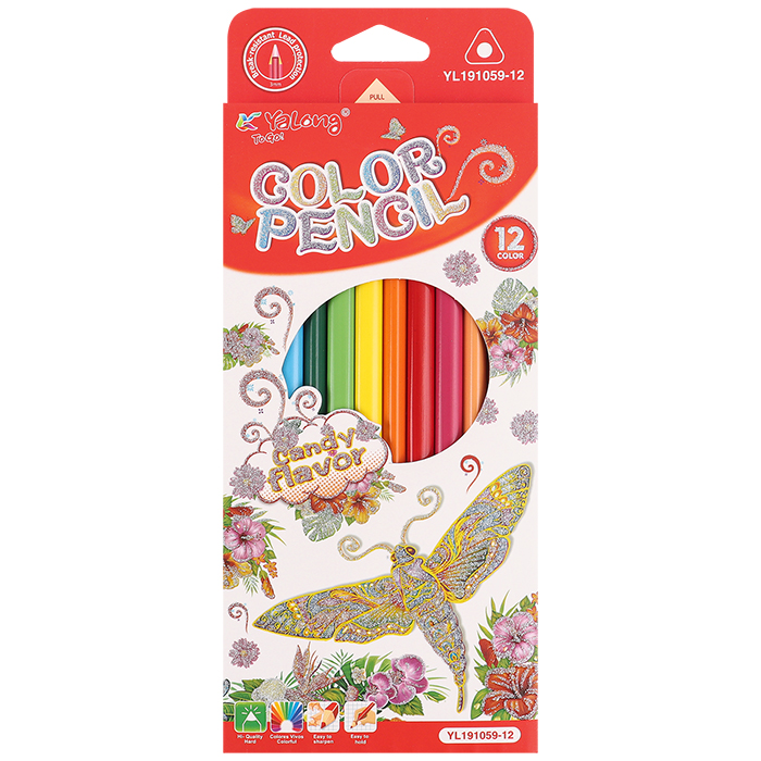 Предназначены для рисования на бумаге и картоне. Количество цветов : 12. Трёхгранный корпус из пластика. Упаковка 12шт: плёнка.8,5*36*5см