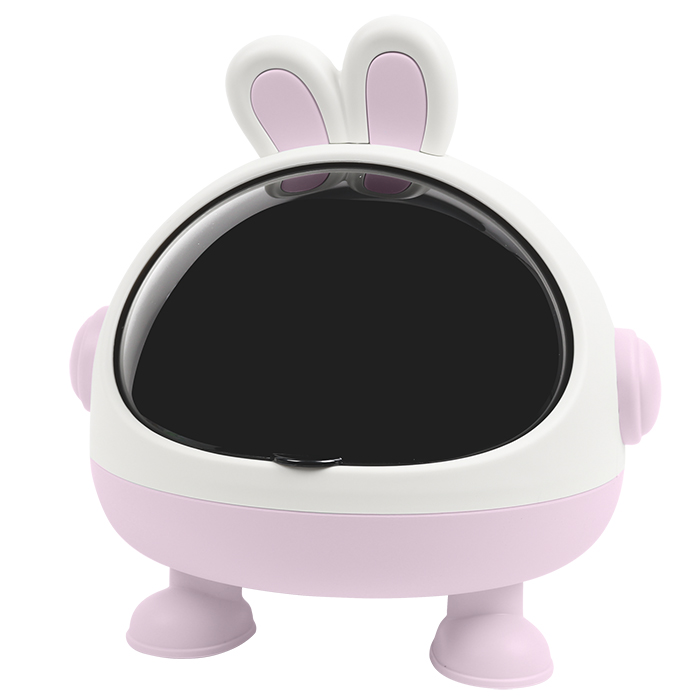 Очень милый дизайн. "Ушки" и "ножки" - съемные. "Ушки" нужно вставить в пазы, находящиеся в верхней части крышки. "Ножки" 3 шт приклеиваются на на двустороний скотч, идущий в комплекте, на нижнюю часть (в форме треугольника для устойчивости)