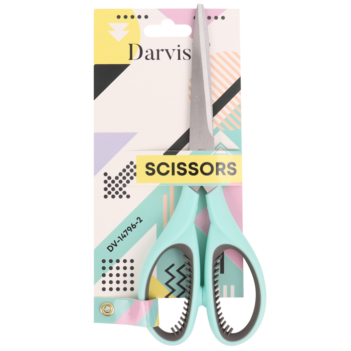 Ножницы канцелярские 20см .Хорошо заточенные зауженные лезвия из нержавеющей стали. Пластиковые ручки с рельефными резиновыми вставками. Цвет ручек: голубой. С европодвесом.9*20,5*1,5см