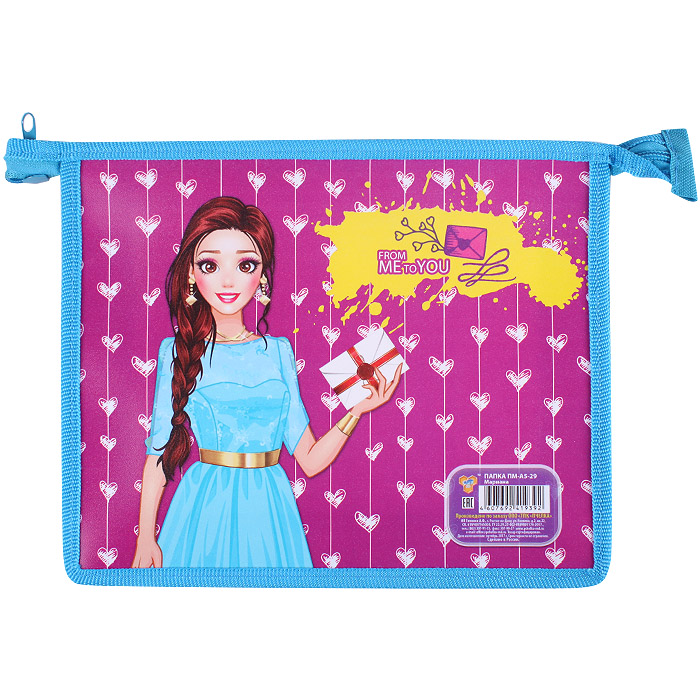 Папка для тетрадей А5 пластиковая, молния сверху, с дизайном.