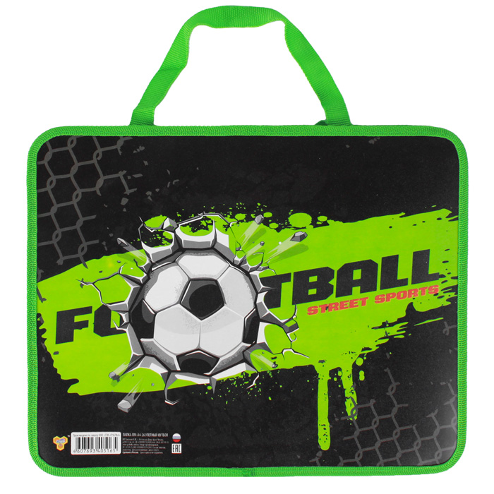 Папка детская с ручками А4 пласт. с рисунком на молнии Улетный футбол