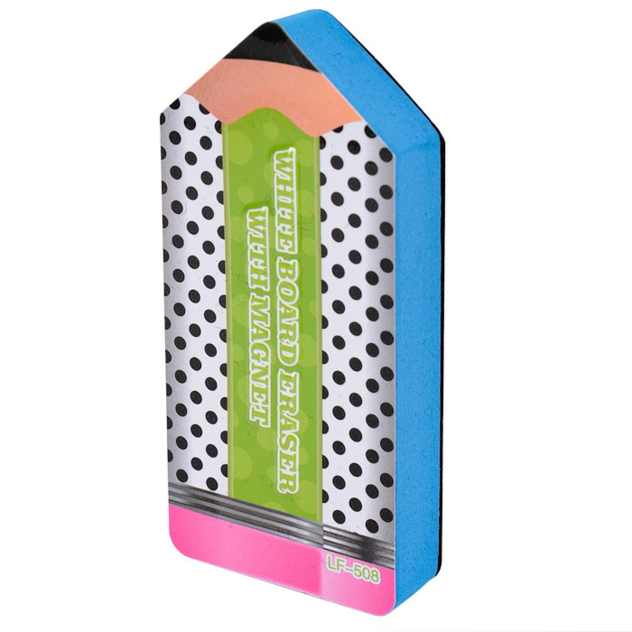 Губка-стиратель магнитная (для маркерной доски) "Карандаш". Ассорти. Размер 12*5,5*2 см. Губка с магнитной полоской для удобного крепления на доску. Предназначена для сухого стирания маркера с доски. Материал: ЭВА, ПВХ, магнит. Индивидуальная упаковка - п/э. Размер шоубокса из 12 шт: 17,5*12,5*9см.