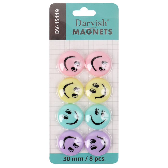 Магниты для доски d=3см "Смайлики" цветные 8шт/уп