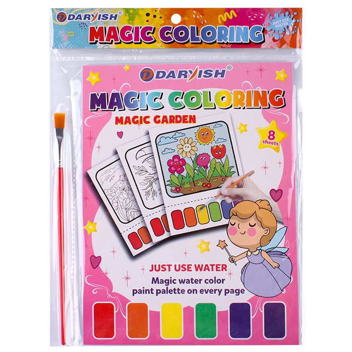 Раскраска волшебная "Чудесный сад" 21*16см + кисточка + сух.краски