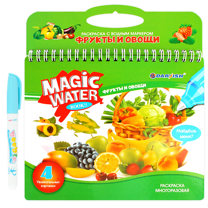 Раскраска с водным маркером. Для детей старше 6-ти лет. Многоразовая раскраска помагает развивать воображение и мелкую моторику рук. Рзамер: 23*20 см. Количество листов (картинок): 4. Материал: бумага (тип - офсет, плотность - не менее 100 г/м.кв.), пластик, синтетический ворс, металл. В наборе раскраска и маркер. Упаковка: п/э с европодвесом 24х20х1,5 см.