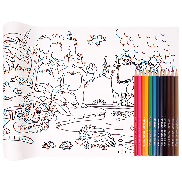 Комплектность: раскраска 200*30см, 12 цветных карандашей. Плотность бумаги - 100г/м2. Упаковка-карт. кор.32*4,5*4,3см