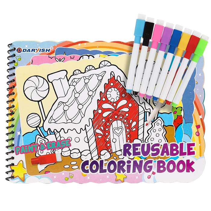 Раскраска помогает развивать воображение, мелкую моторику рук и художественный вкус. Можно вытирать разукрашенные картинки и снова рисовать. Комплектность: раскраска (26*19см) * 14 сюжетов., 8 цветных маркеров с наконечником-губкой для стирания. Упаковка - п/э , европодвес.