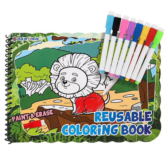 Раскраска многоразовая "Животный мир" + 8 цв. маркеров