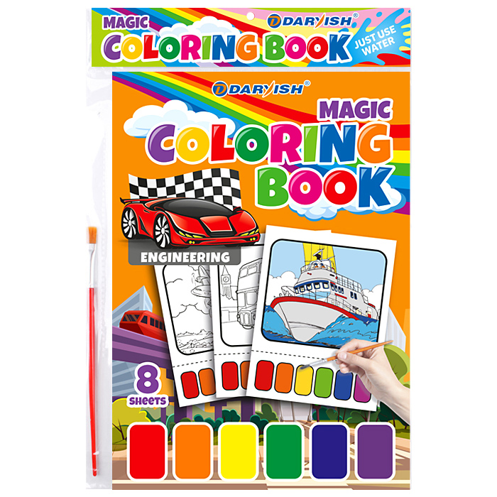 Раскраска волшебная 8 картинок А4 + кисточка /4вида/