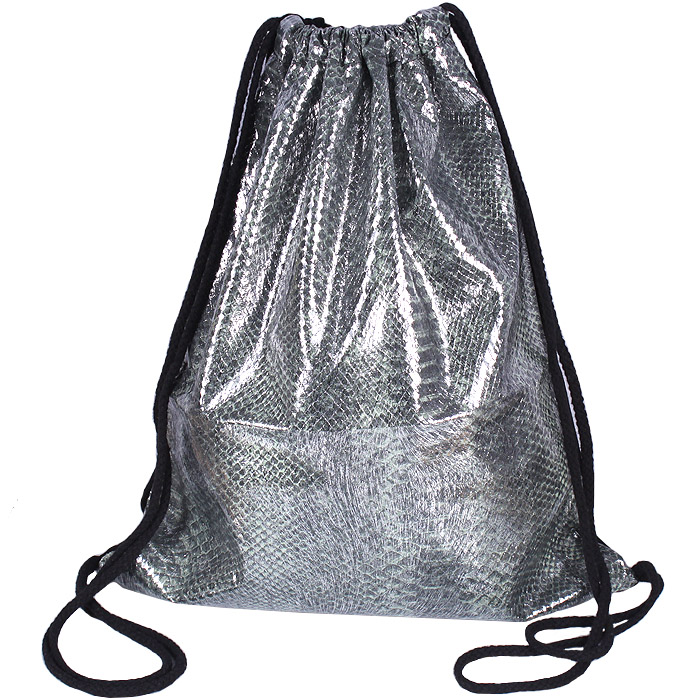 Мешок для сменной обуви состоит из одного вместительного отделения, закрывается путём стягивания шнурков. Блестящая тканьс одной стороны мешка.