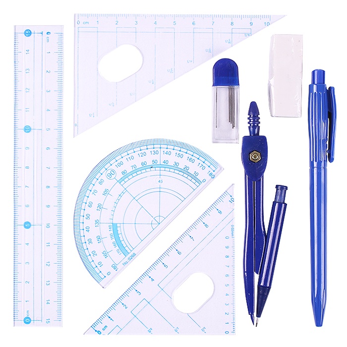 Готовальня 8 предметов "Darvish" циркуль + грифели + ручка автоматическая + ластик + линейка + 2 треугольника + транспортир .