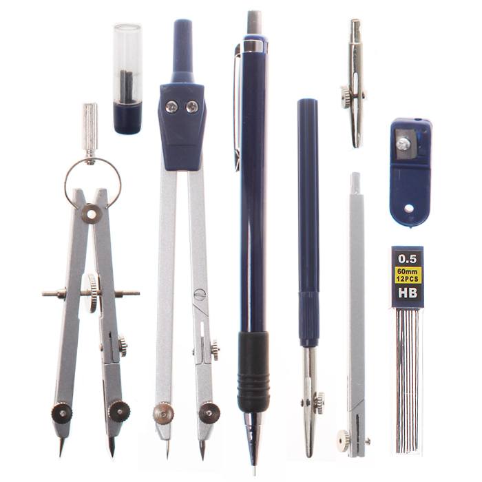Готовальня 9 предм. "Darvish" (цирк.+измер.цирк.+рейсф.+удлин.+насадка для рейсф.+мех.каранд.+точилка+гриф+гриф для мех.каранд.)